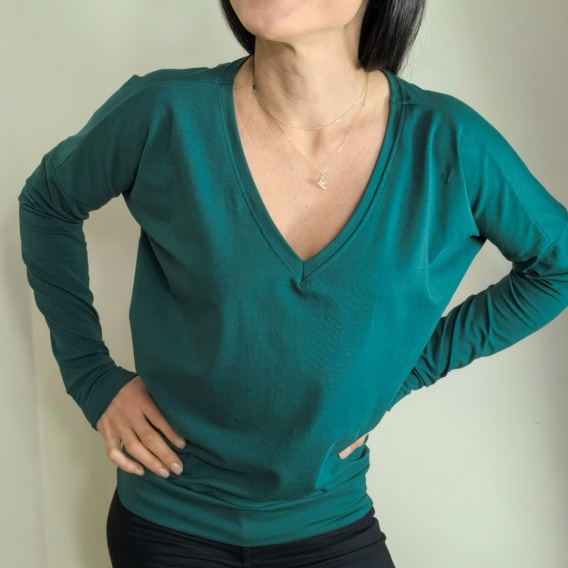 Materiał bluzki: dzianina bawełniana SINGLE (bawełna 97% elastan 3%), elastyczna - uciąga się 8-10cm na obwodzie, miękka i miła w dotyku